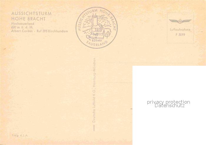 72751808 Kirchhundem Aussichtsturm Hohe Bracht Fliegeraufnahme postalisch nicht gelaufen Erhaltung siehe scans [FriedD77] KatCode: 11110005966016