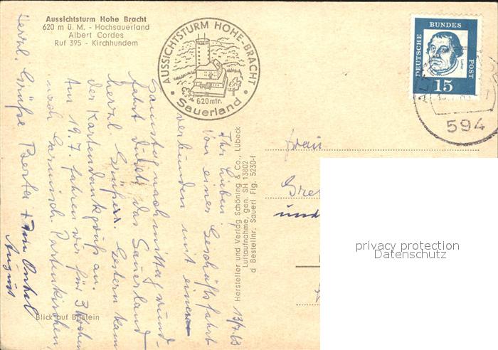 72496314 alte Postkarte Kirchhundem Aussichtsturm Hohe Bracht Fliegeraufnahme postalisch gelaufen Erhaltung siehe scans KatCode: 11110005966016