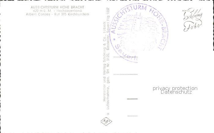 72076008 Kirchhundem Aussichtsturm Hohe Bracht Fliegeraufnahme postalisch nicht gelaufen Erhaltung siehe scans KatCode: 11110005966016