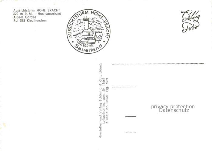 74120026 Kirchhundem Aussichtsturm Hohe Bracht Fliegeraufnahme postalisch nicht gelaufen Erhaltung siehe scans [WerneD78] KatCode: 11110005966016