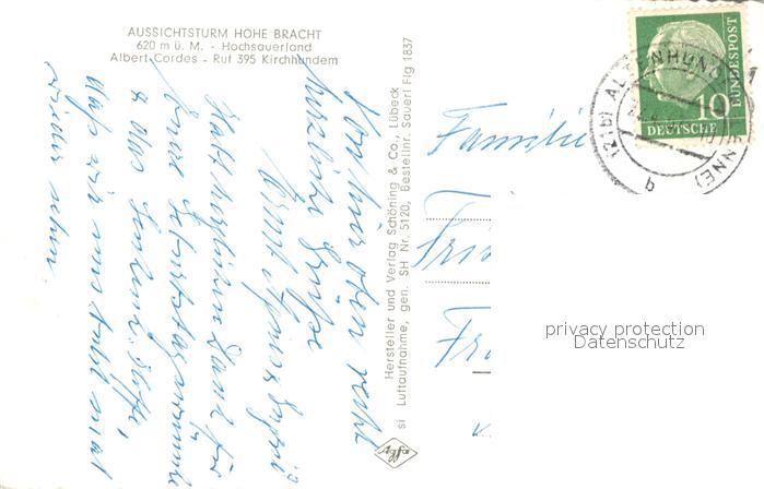 73608490 alte Postkarte Kirchhundem Aussichtsturm Hohe Bracht Fliegeraufnahme postalisch gelaufen Erhaltung siehe scans [FriedD77] KatCode: 11110005966016