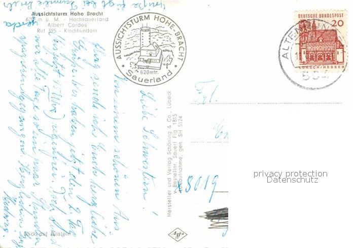 72811632 alte Postkarte Kirchhundem Aussichtsturm Hohe Bracht Fliegeraufnahme postalisch gelaufen Erhaltung siehe scans [FriedD77] KatCode: 11110005966016