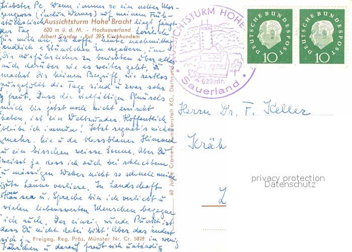 72720947 alte Postkarte Kirchhundem Aussichtsturm Hohe Bracht Herbststimmung Fliegeraufnahme postalisch gelaufen Erhaltung siehe scans [FriedD77] KatCode: 11110005966016