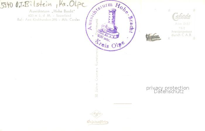 73700051 Kirchhundem Aussichtsturm Hohe Bracht Stempel postalisch nicht gelaufen Fliegeraufnahme Erhaltung siehe scans [FriedD77] KatCode: 11110005966016