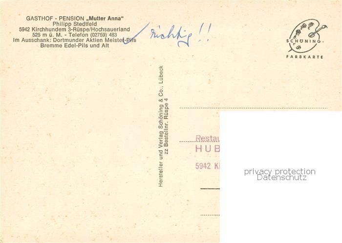 73758504 Kirchhundem Fliegeraufnahme Gasthof-Pension Mutter Anna postalisch nicht gelaufen Erhaltung siehe scans [LiesaD40] KatCode: 11110005966016