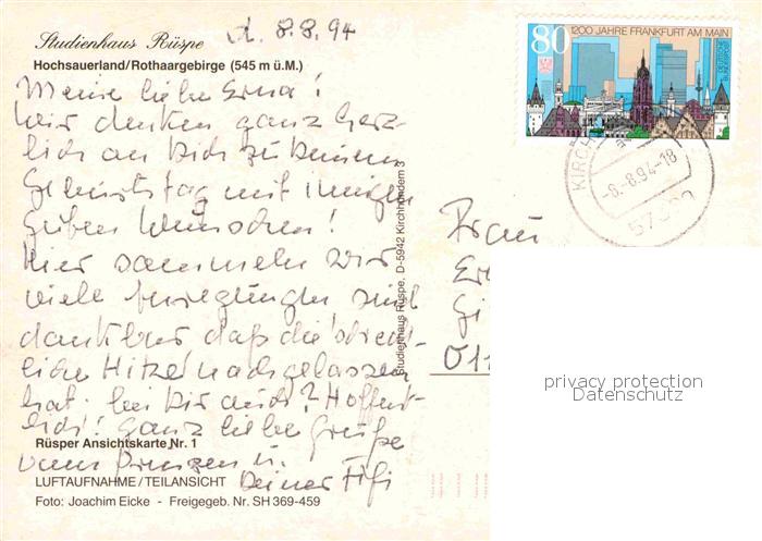 72917807 alte Postkarte Kirchhundem Fliegeraufnahme Studienhaus Ruespe postalisch gelaufen Erhaltung siehe scans [LiesaD40] KatCode: 11110005966016