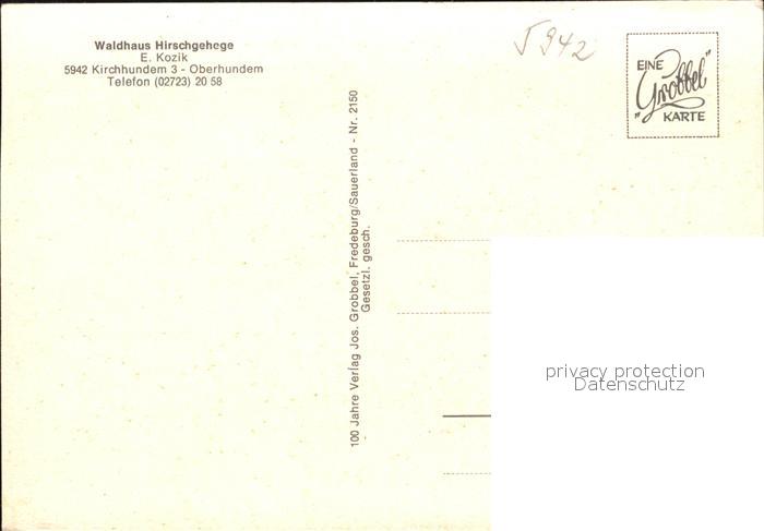 72450670 Kirchhundem Hirschgehege Adolfsburg Rinsecke Oberhunden postalisch nicht gelaufen Erhaltung siehe scans KatCode: 11110005966016