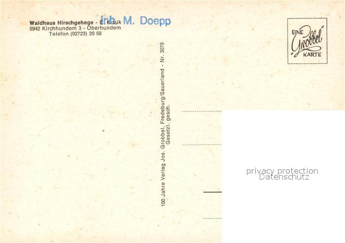 73087809 Kirchhundem Hotel Waldhaus Hirschgehege postalisch nicht gelaufen Erhaltung siehe scans [KathaD81] KatCode: 11110005966016