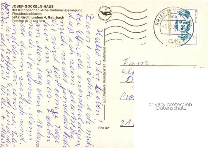 73169700 alte Postkarte Kirchhundem Josef Gockeln Haus Speisesaal Bierstube Hallenbad Grillen postalisch gelaufen Erhaltung siehe scans [WerneD78] KatCode: 11110005966016