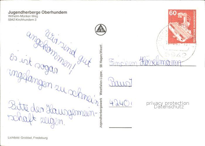 72396509 alte Postkarte Kirchhundem Jugendherberge Oberhundem Hirschfreigehege Rhein-Weser-Turm postalisch gelaufen Erhaltung siehe scans KatCode: 11110005966016