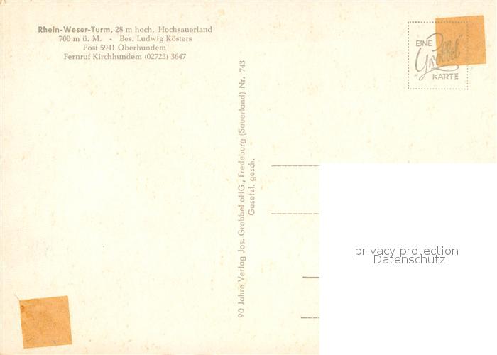 73021226 Kirchhundem Rhein-Weser-Turm postalisch nicht gelaufen Erhaltung siehe scans [PaolaD17] KatCode: 11110005966016