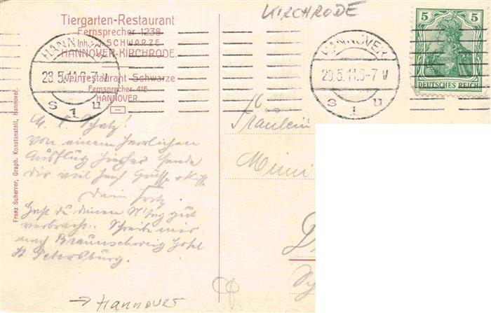73974754 alte Postkarte Kirchrode Hannover Tiergarten-Restaurant Schwarze postalisch gelaufen Erhaltung siehe scans [FriedD77] KatCode: 11110003241001