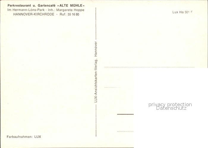 72570739 Kirchrode Parkrestaurant und GartenCafe Alte Muehle postalisch nicht gelaufen Erhaltung siehe scans [AndreD76] KatCode: 11110003241001