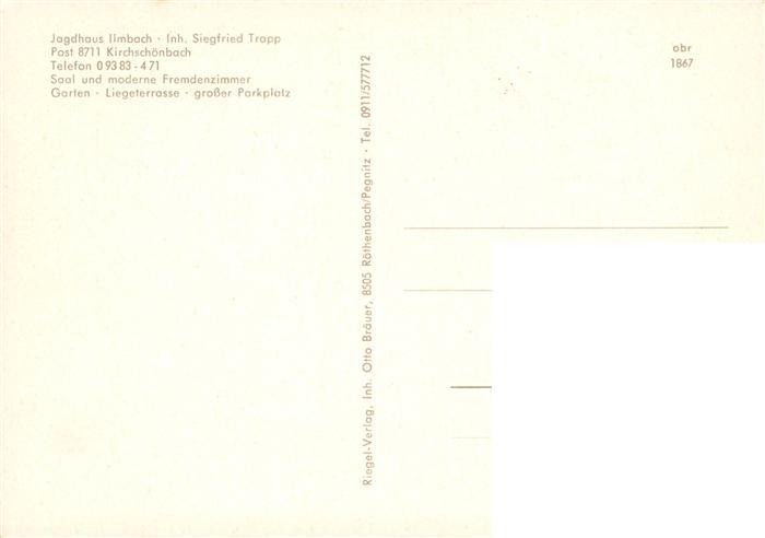 73879514 Kirchschoenbach Jagdhaus Ilmbach im Steigerwald Gastraeume postalisch nicht gelaufen Erhaltung siehe scans [FriedD77] KatCode: 11110009675158