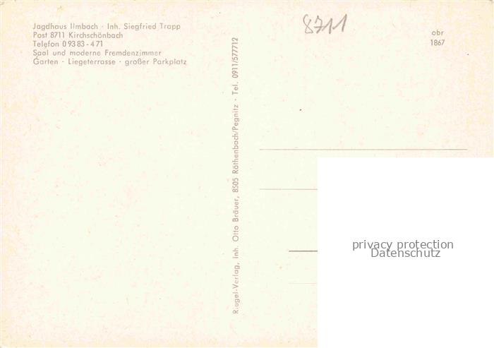74054394 Kirchschoenbach Prichsenstadt Bayern Jagdhaus Ilmbach im Steigerwald Gastraeume postalisch nicht gelaufen Erhaltung siehe scans [WerneD78] KatCode: 11110009675158