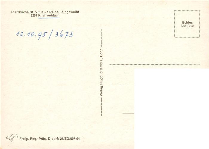 73937848 Kirchweidach Bayern Pfarrkirche St. Vitus postalisch nicht gelaufen Fliegeraufnahme Erhaltung siehe scans [FriedD77] KatCode: 11110009171122