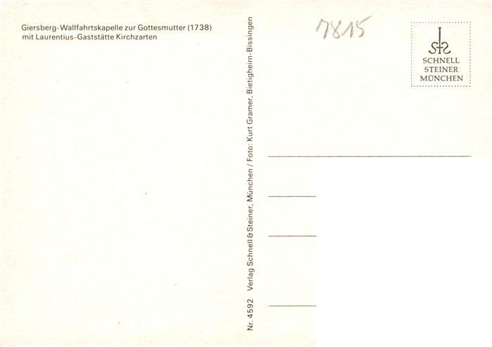 73929585 Kirchzarten Giersberg Wallfahrtskapelle zur Gottesmutter mit Laurentius Gaststaette postalisch nicht gelaufen Erhaltung siehe scans [WerneD78] KatCode: 11110008315064
