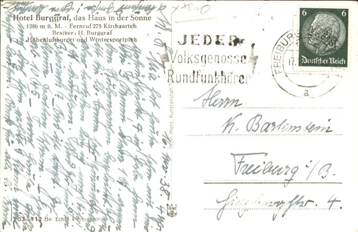 41213956 Kirchzarten Hotel Burggraf KatCode 11110008315064