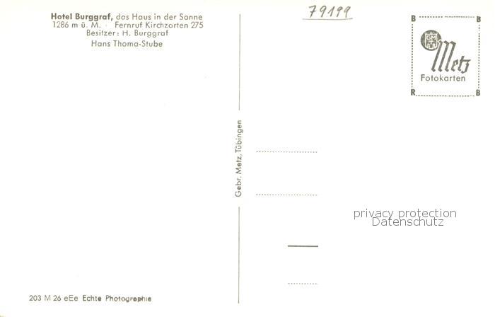 73774599 Kirchzarten Hotel Burggraf Hans Thoma Stube postalisch nicht gelaufen Erhaltung siehe scans [WerneD78] KatCode: 11110008315064