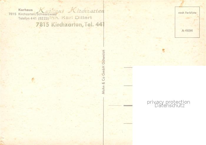 73020409 Kirchzarten Kurhaus postalisch nicht gelaufen Erhaltung siehe scans [PaolaD17] KatCode: 11110008315064