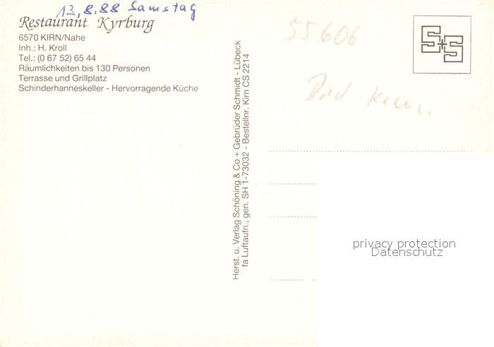 73321826 Kirn Nahe Fliegeraufnahme Restaurant Kyrburg postalisch nicht gelaufen Erhaltung siehe scans [KathaD81] KatCode: 11110007133052