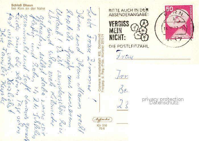 73123191 alte Postkarte Kirn Nahe Fliegeraufnahme Schloss Dhaun postalisch gelaufen Erhaltung siehe scans [LiesaD40] KatCode: 11110007133052