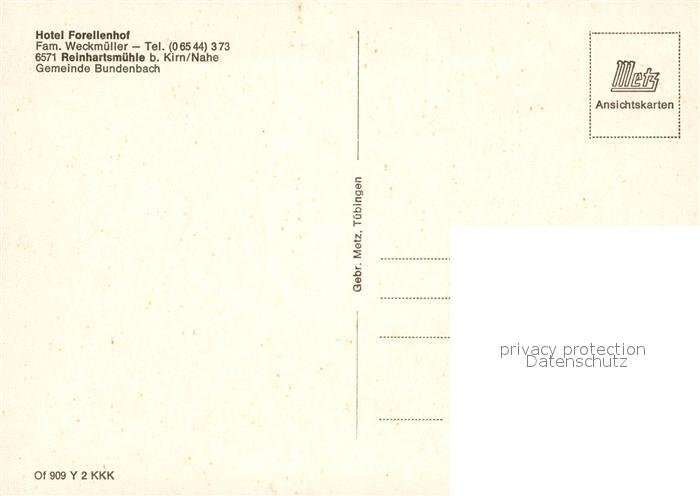 73324361 Kirn Nahe Hotel Forellenhof Reinhartsmuehle Pferde Teich Angeln postalisch nicht gelaufen Erhaltung siehe scans [FriedD77] KatCode: 11110007133052