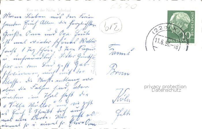 72148837 alte Postkarte Kirn Nahe Jahnbad postalisch gelaufen Erhaltung siehe scans KatCode: 11110007133052