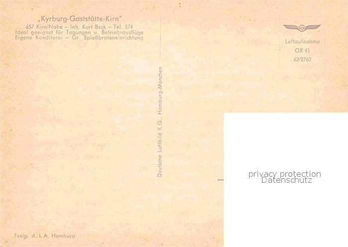 72772763 Kirn Nahe Kyrburg Gaststaette Kirn Fliegeraufnahme postalisch nicht gelaufen Erhaltung siehe scans [WerneD78] KatCode: 11110007133052