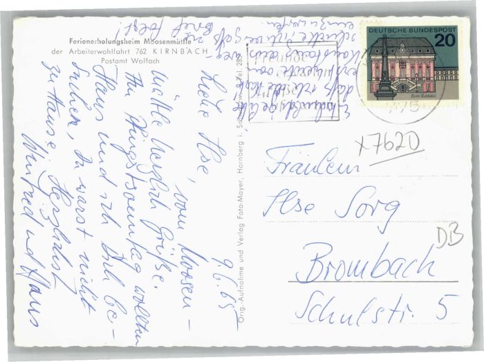 40711979 alte Postkarte Kirnbach Erholungsheim Moosenmaettle Tracht postalisch gelaufen KatCode:
