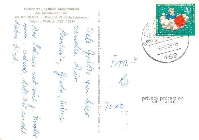 73829808 alte Postkarte Kirnbach Wolfach Ferienerholungsheim Moosenmaettle der AWO postalisch gelaufen Erhaltung siehe scans [WerneD78] KatCode: 11110008317145