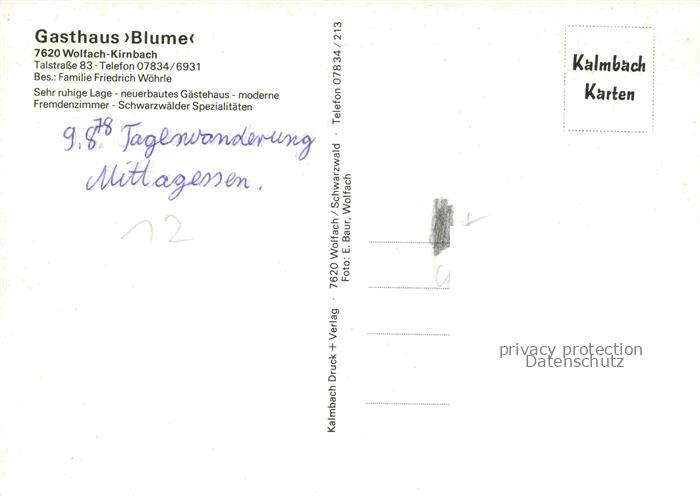 74084470 Kirnbach Wolfach Gasthaus Blume Terrasse postalisch nicht gelaufen Erhaltung siehe scans [WerneD78] KatCode: 11110008317145
