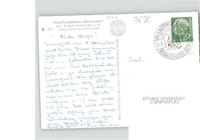 41620007 alte Postkarte Kirnbach Wolfach Naturfreundehaus Sommerecke postalisch gelaufen Erhaltung siehe scans KatCode: 11110008317145