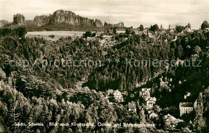 72632151 alte Postkarte Kirnitzschtal Ostrau und Schrammsteine Elbsandsteingebirge postalisch gelaufen Erhaltung siehe scans [FriedD77] KatCode: 11110014287180