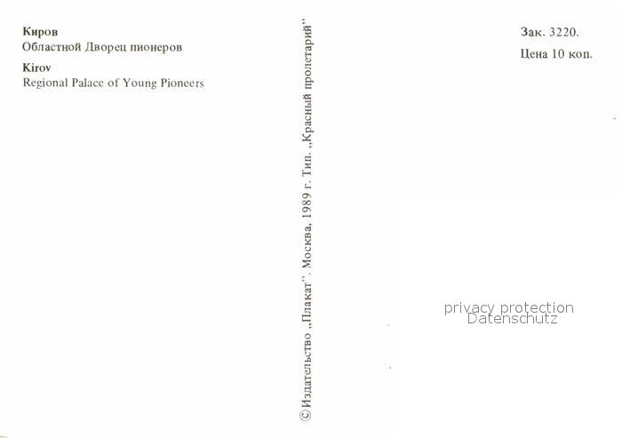 Kirow Regional Palace of Young Pioneers postalisch nicht gelaufen Erhaltung siehe scans [NatalD47]