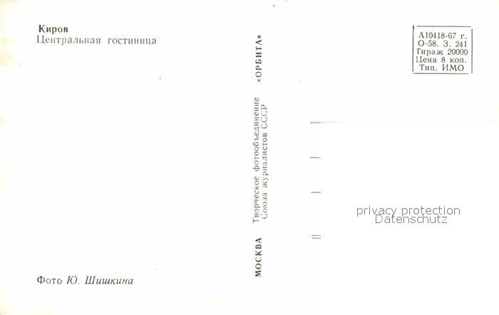 Kirow Zentralnaja Hotel postalisch nicht gelaufen Erhaltung siehe scans [NatalD47]