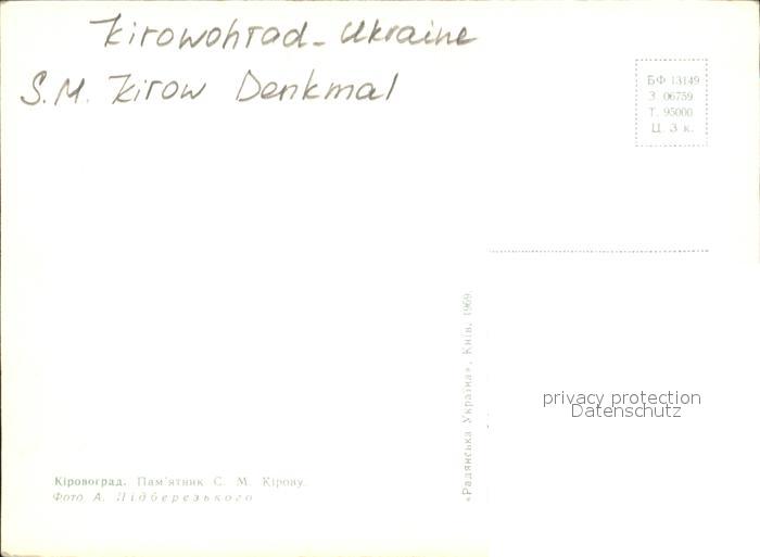 Kirowohrad SM Kirow Denkmal postalisch nicht gelaufen Erhaltung siehe scans