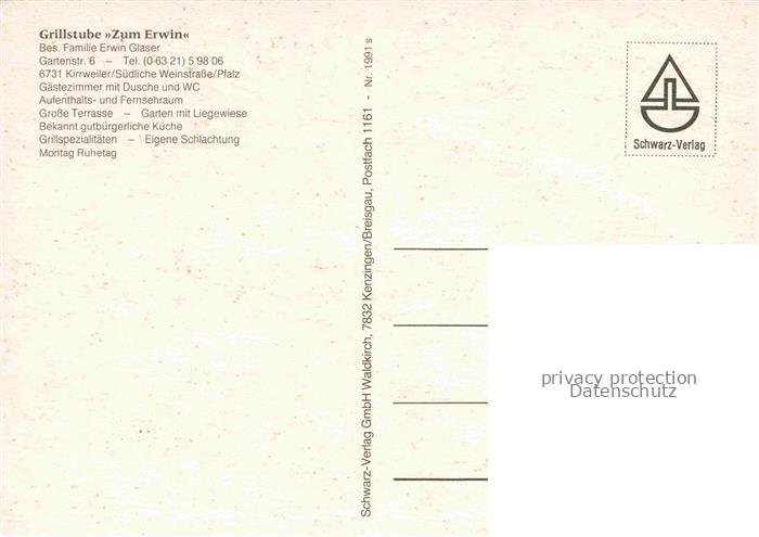 74046770 Kirrweiler Pfalz Grillstube Zum Erwin Terrasse Gastraeume postalisch nicht gelaufen Erhaltung siehe scans [WerneD78] KatCode: 11110007337047