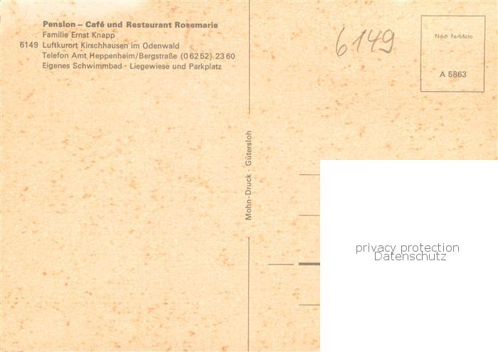 73783721 Kirschhausen Pension-Cafe Rosemarie Aussenansicht postalisch nicht gelaufen Erhaltung siehe scans [LiesaD40] KatCode: 11110006431011