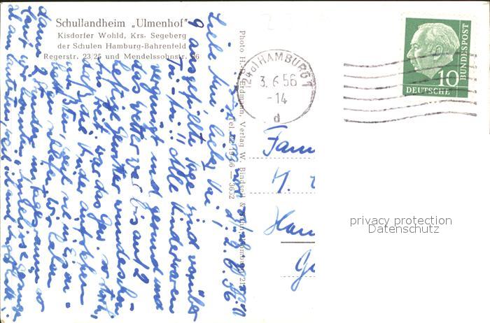 31849461 alte Postkarte Kisdorferwohld Holstein Schullandheim Ulmenhof postalisch gelaufen Erhaltung siehe scans KatCode: 11110001060047