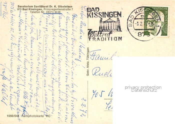 73080572 alte Postkarte Kissingen Bad Sanatorium Uibeleisen postalisch gelaufen Erhaltung siehe scans [KathaD81] KatCode: 11110009672114