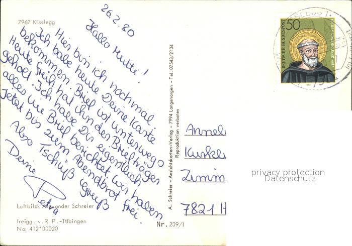 72586630 alte Postkarte Kisslegg Fliegeraufnahme postalisch gelaufen Erhaltung siehe scans [AndreD76] KatCode: 11110008436052
