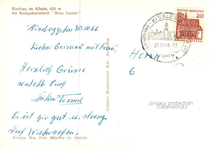 73549306 alte Postkarte Kisslegg Fliegeraufnahme mit Kneippkuranstalt Haus Loretto postalisch gelaufen Erhaltung siehe scans [WerneD78] KatCode: 11110008436052