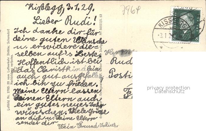 31705982 alte Postkarte Kisslegg Fliegeraufnahme Straehle Bild Nr. 2783 postalisch gelaufen Erhaltung siehe scans KatCode: 11110008436052