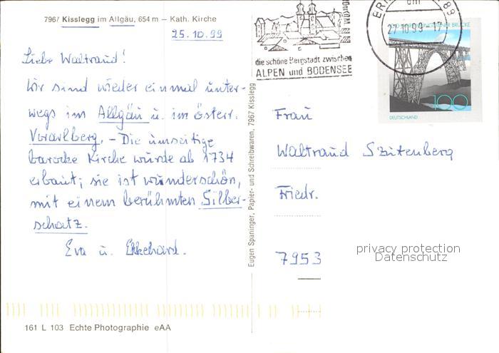 72923315 alte Postkarte Kisslegg Kath Kirche Kanzel Altar postalisch gelaufen Erhaltung siehe scans [WerneD48] KatCode: 11110008436052
