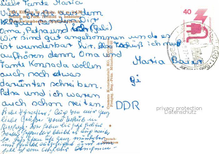 72664353 alte Postkarte Kisslegg Schloss Park Freibad Fliegeraufnahme postalisch gelaufen Erhaltung siehe scans [WerneD78] KatCode: 11110008436052