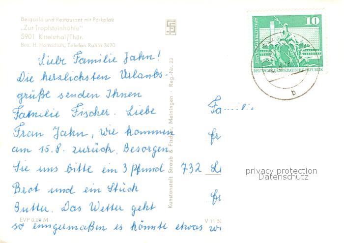 43506009 alte Postkarte Kittelsthal Bergcafe Restaurant Zur Tropfsteinhoehle postalisch gelaufen Erhaltung siehe scans [KathaD81] KatCode: 11110016063066
