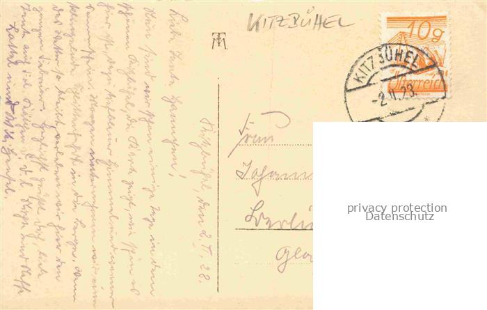 74150757 alte Postkarte Kitzbuehel Tirol AT Kapelle Winterlandschaft Fichten Schnee Stadtansicht postalisch gelaufen Erhaltung siehe scans [Karloger] KatCode: 11390335070411