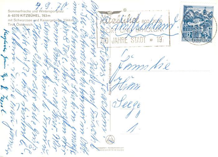 73945635 alte Postkarte Kitzbuehel Tirol AT Panorama Luftkurort mit Schwarzsee und Kaisergebirge postalisch gelaufen Fliegeraufnahme Erhaltung siehe scans [FriedD77] KatCode: 11390335070411
