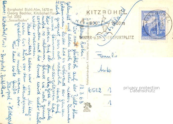 73049849 alte Postkarte Kitzbuehel Tirol Berghotel Bichl Alm Winter postalisch gelaufen Erhaltung siehe scans [KathaD81] KatCode: 11390335070411